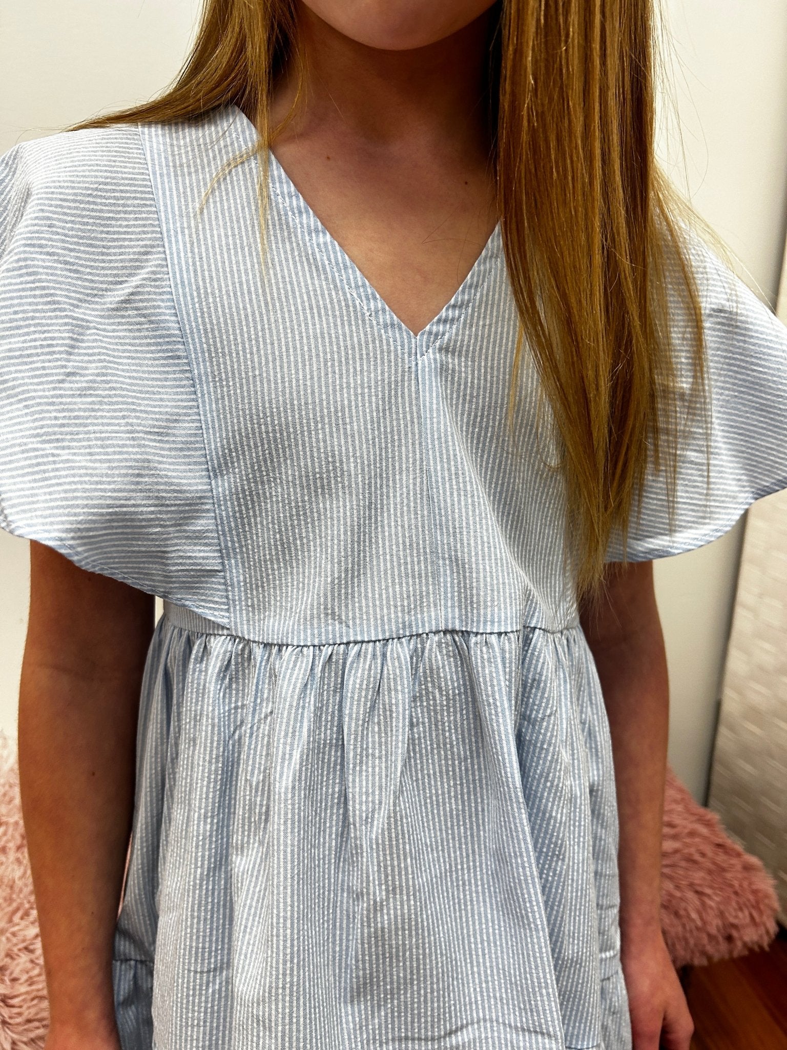 She'll spin with confidence in this light blue tiered dress from Molly Bracken! The double V-neckline adds a touch of sophistication, while delicate flutter sleeves and flowing tiers create that perfect spin-worthy silhouette. Crafted for comfort and style, this dress transitions effortlessly from playdates to special occasions, making it perfect for the girl who loves to express herself through fashion.