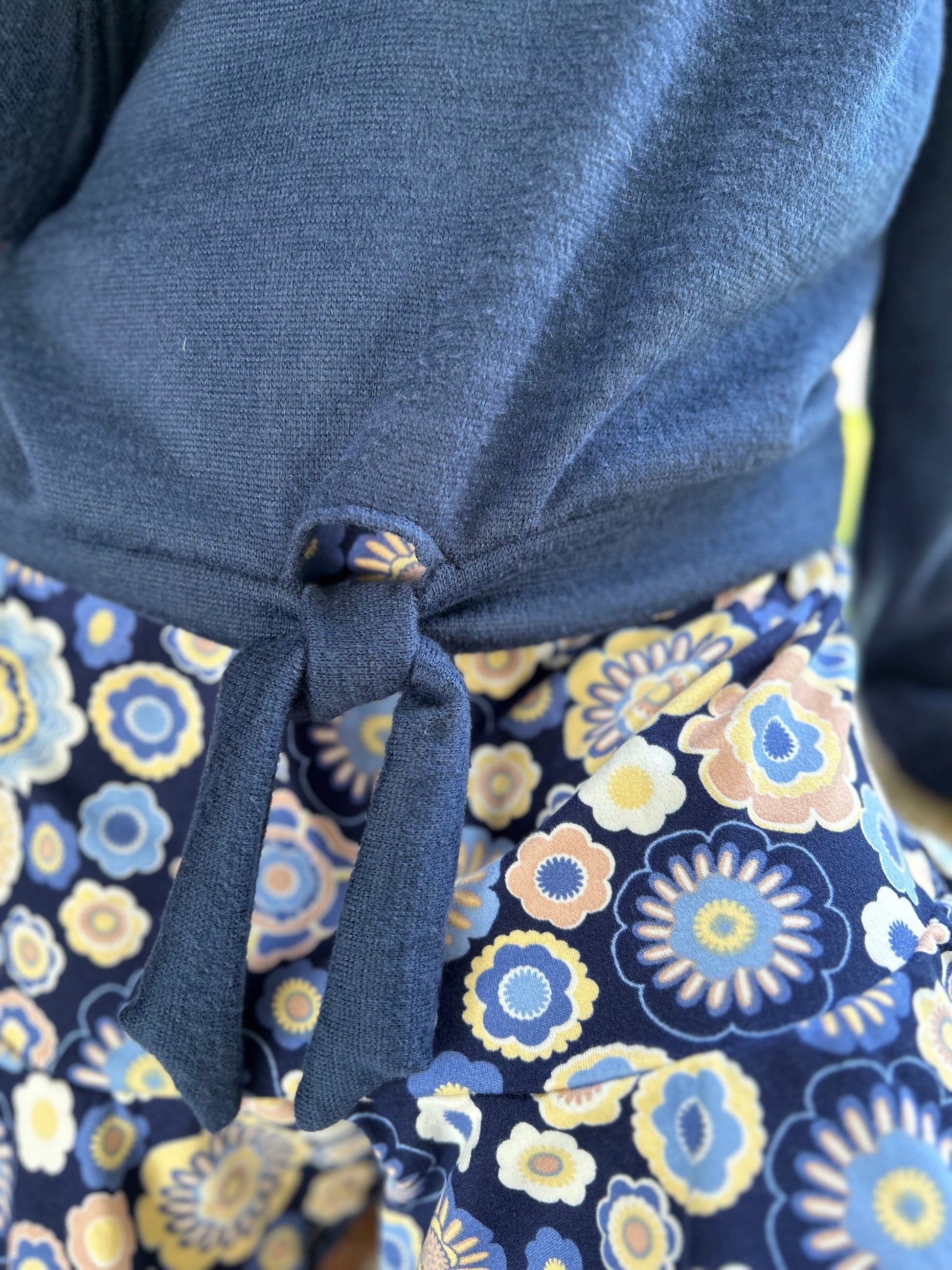 AC407-Girls Navy Brushed Knit Tie Front Top (JKA)