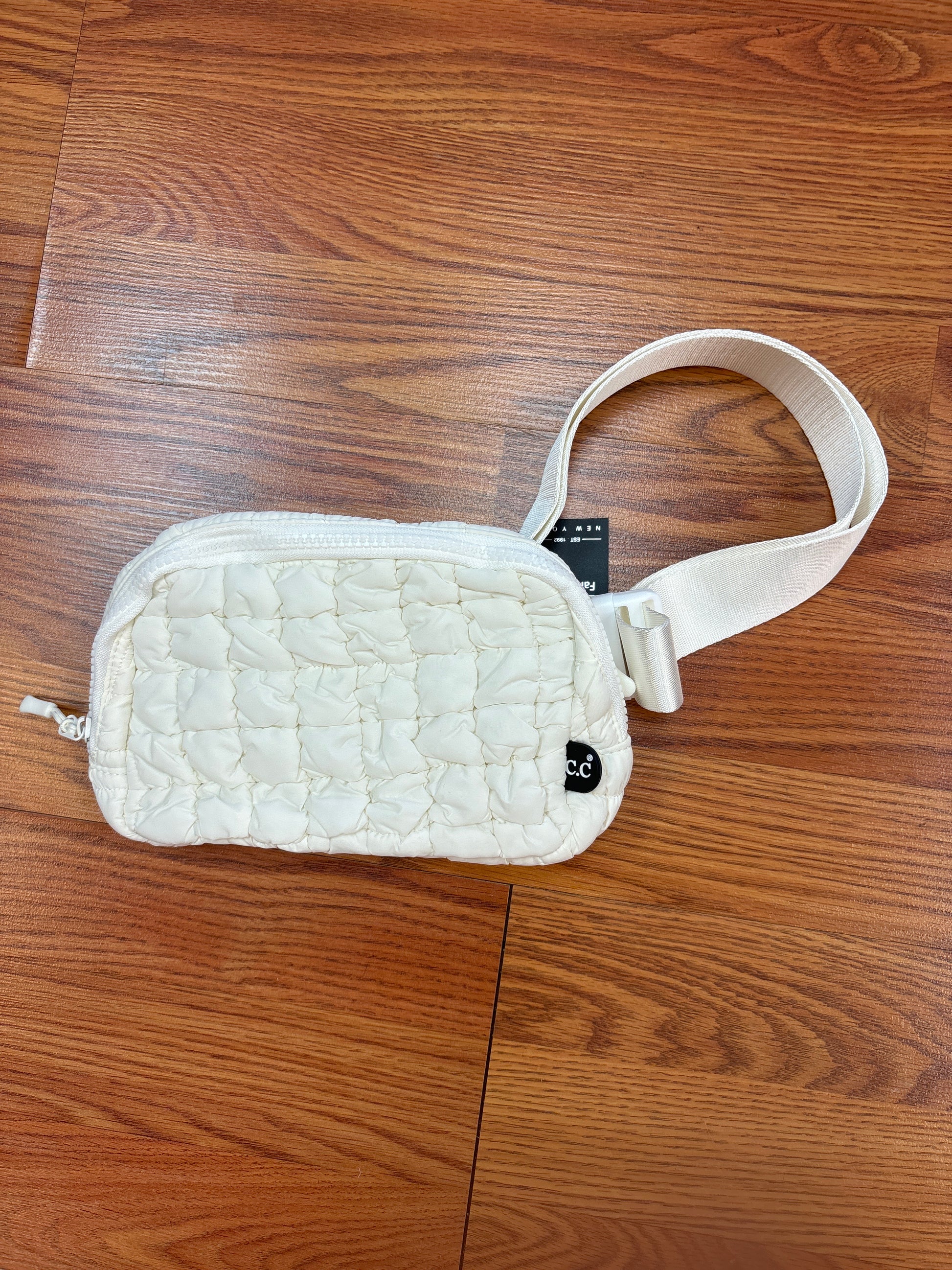 This CC bag offers a sleek crossbody design with a quilted puffer exterior. The adjustable strap allows for a comfortable and secure fit, making it the perfect accessory for on-the-go convenience. Stay stylish and hands-free with this versatile belt bag.