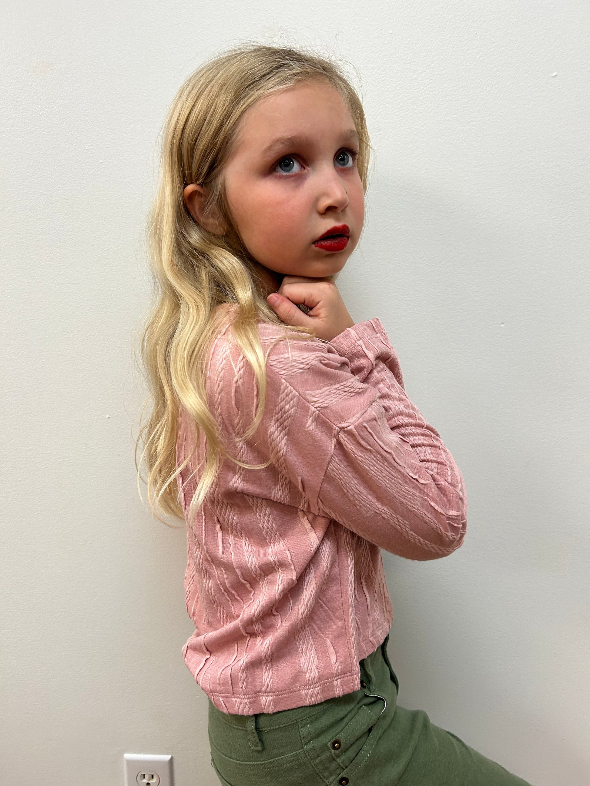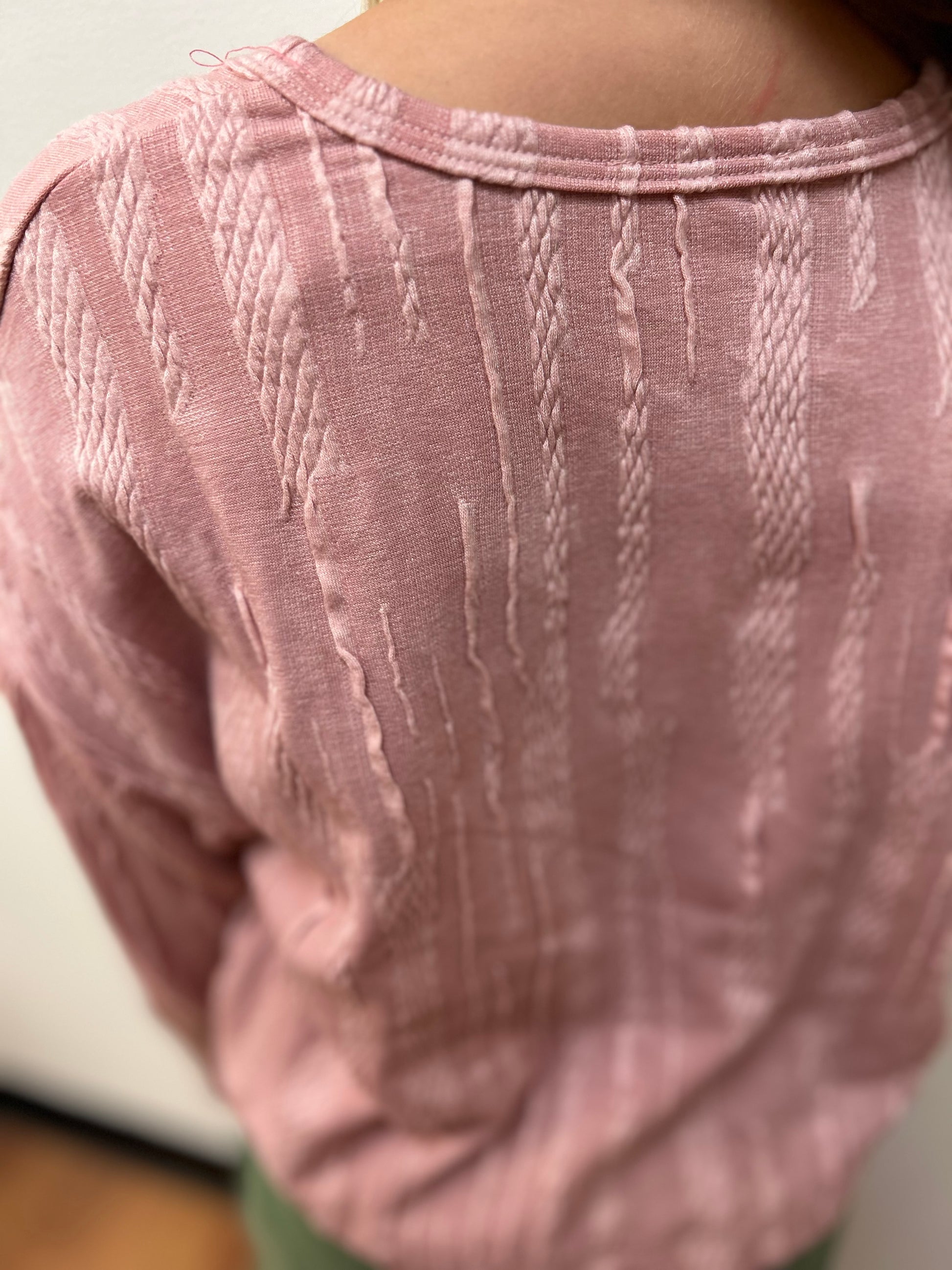 Discover the perfect blend of comfort and style with this Hayden girls oversized top. Designed from a textured dusty rose fabric, this top features a crew neck that V’s at the front for a touch of sophistication. The oversized style and cropped length add a modern twist to any outfit.