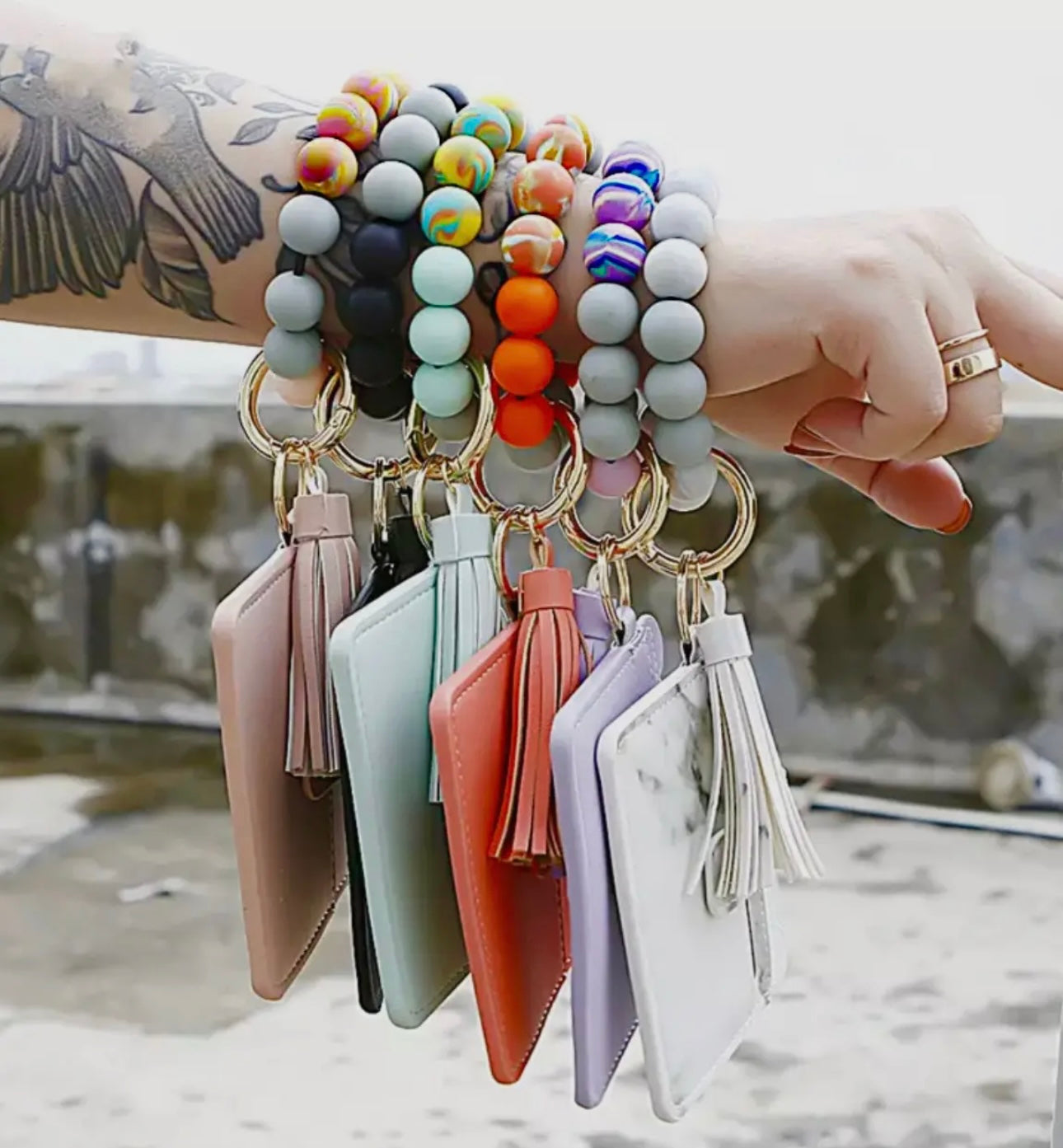 Everyone loves these wristlet wallets with silicone bead keychains with tassels. They are perfect for gifting to a friend or to yourself.