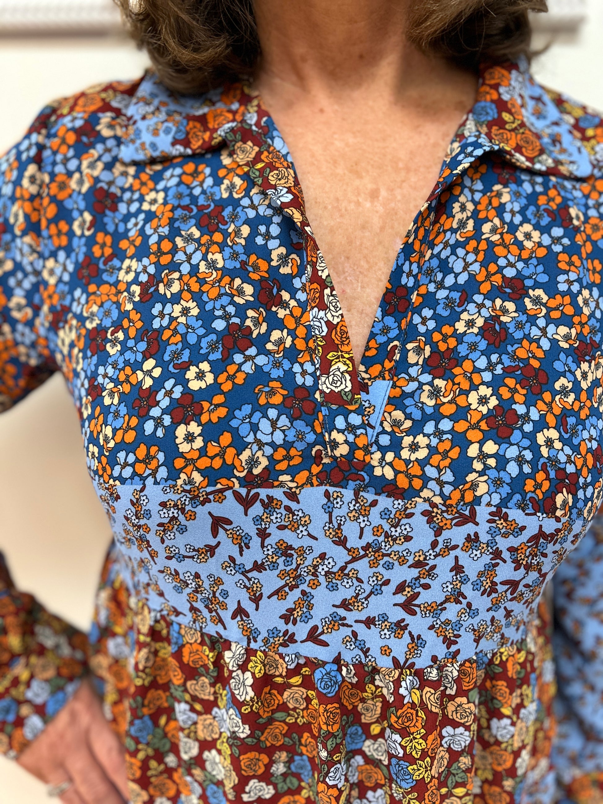 Expertly crafted with lightweight, flowing georgette fabrication, the Emmy Dress boasts a charming ditsy floral print. The timeless babydoll cut and elegant shirring details create a relaxed, flattering fit. With a classic Johnny collar and long sleeves, this dress is perfect for any occasion.